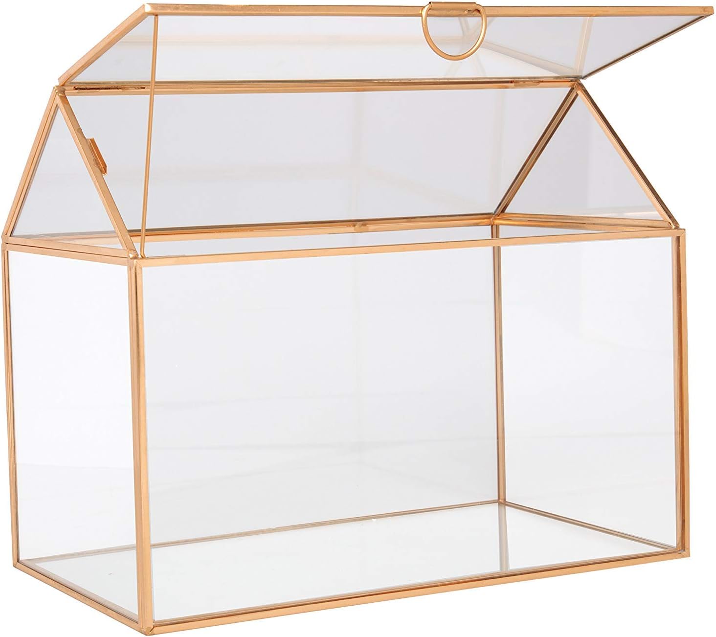 D’Eco Glass House Centerpiece (10x6x8)- Tabletop Planter Terrarium – Valentine’s Day Home Decor & Wedding Letterbox – Fill with Succulents, Moss, Roses & Chocolates – Valentines Gift for Plant Lovers