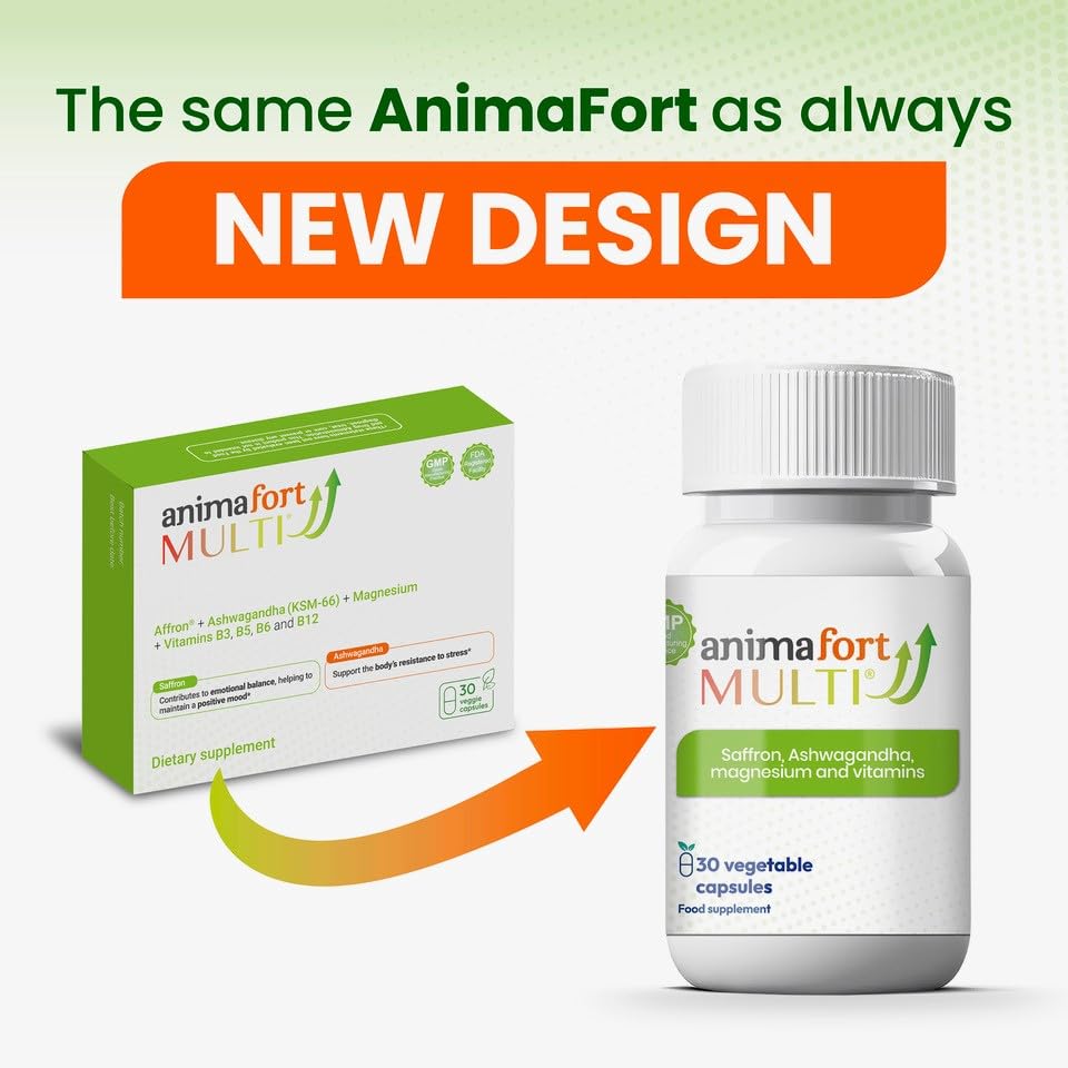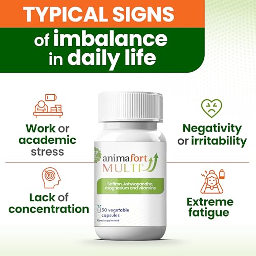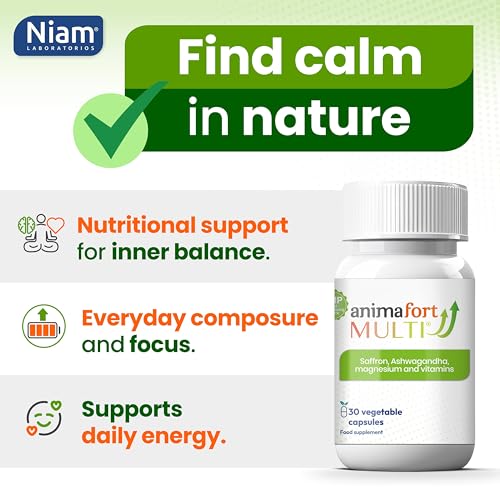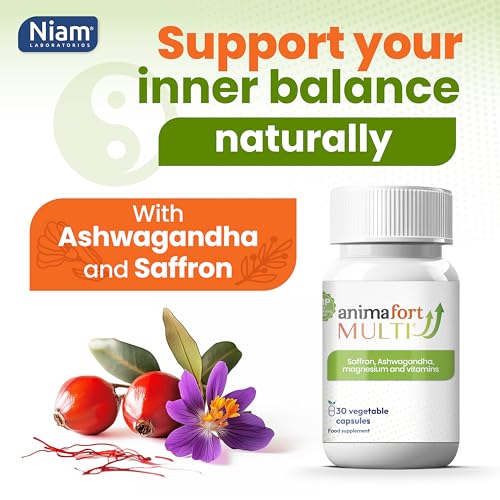 NIAM Laboratorios Ashwagandha KSM-66 & Saffron Supplement | Stress Relief, Mood & Emotional Balance | Vitamin B & Magnesium | Natural Pills for Mental Relaxation | 30 Capsules | AnimaFort Multi