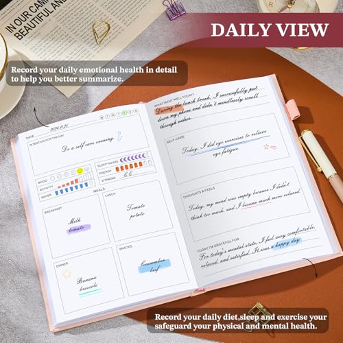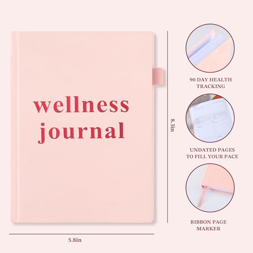 Wellness Journal Planner- Gratitude & Mindset Mental Health Journal,Track Goals, Sleep & Lifestyle,Daily Self Reflection,Self Care Journal,Daily Positive Mindfulness Diary,size A5 pink.