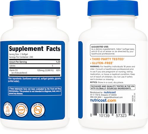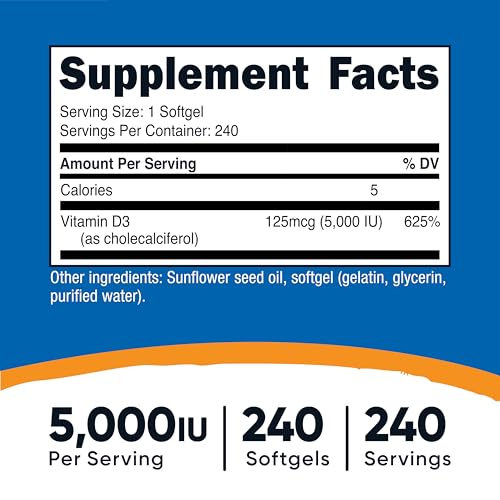 Nutricost Vitamin D3 5,000 IU (125mcg), 240 Softgels – Non-GMO and Gluten Free Vitamin D