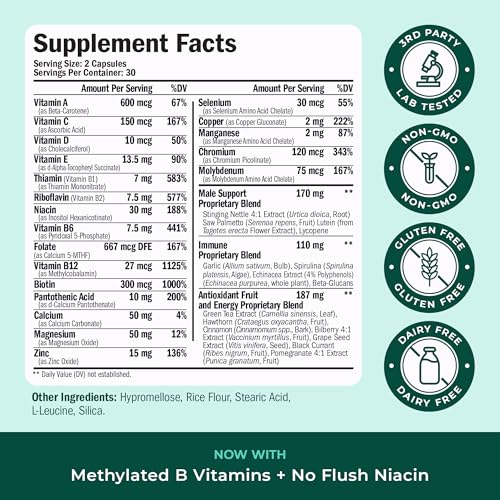 Energy, Mood and Focus – High-strength Methylated B-Complex with Vitamin B12 support natural energy, stress balance and mental clarity. A meaningful upgrade for anyone comparing Men’s Multivitamin options.*